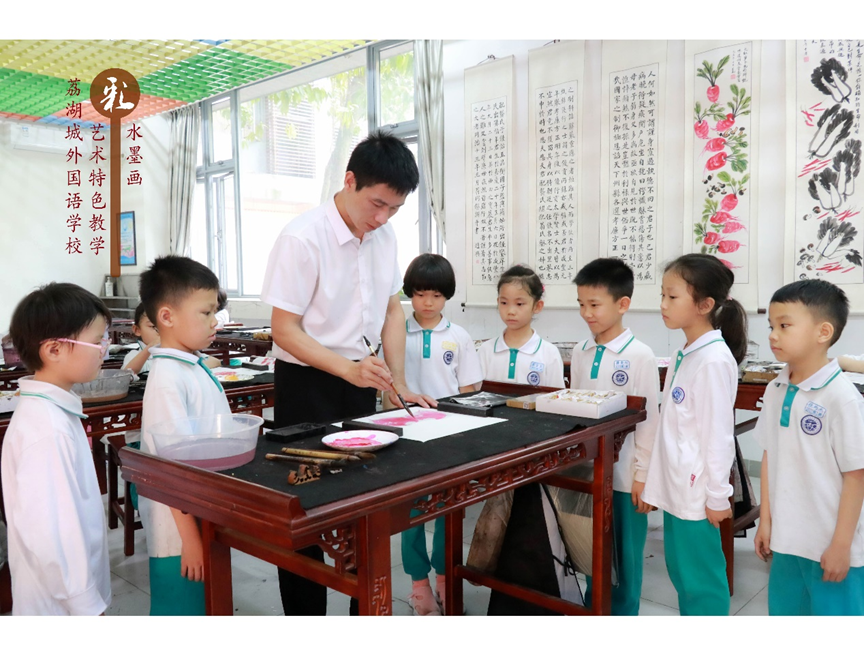 作为广东省教育厅授予的“广东少儿水墨画特色教学与创作实验基地”、广州市第二批艺术教育重点基地学校,荔湖城外国语学校始终坚守“质量立校、特色兴校,外语见长、艺体并重”的办学思路,以“一体两翼”为发展核心,将艺体特色教育落到实处,让每一位学子都能在艺术的滋养中全面成长。